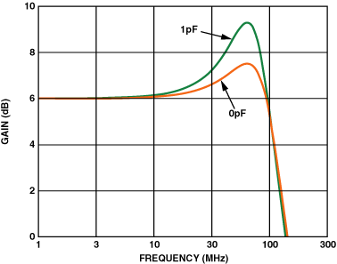 在高速電路中,影響很大,僅僅十分之幾皮卡就足夠了。舉例說(shuō)明:如果在逆變輸入端只存在1pf的附加雜散寄生電容,則在頻域內(nèi)可能導(dǎo)致幾乎2db的峰值(圖4)。如果存在足夠的電容,它會(huì)導(dǎo)致不穩(wěn)定和振蕩。